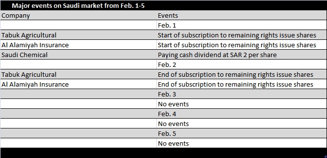 Investors in Saudi Stock Exchange (Tadawul) are anticipating the following major events this week: