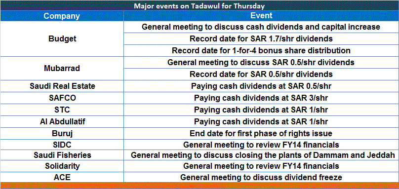 Riyadh-Mubasher: Investors are anticipating the following major events on the Saudi bourse on Thursday: