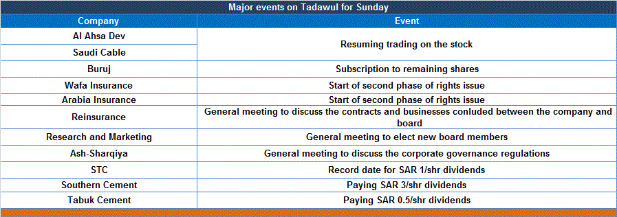 Riyadh-Mubasher: Investors are anticipating the following major events on the Saudi bourse on Sunday: