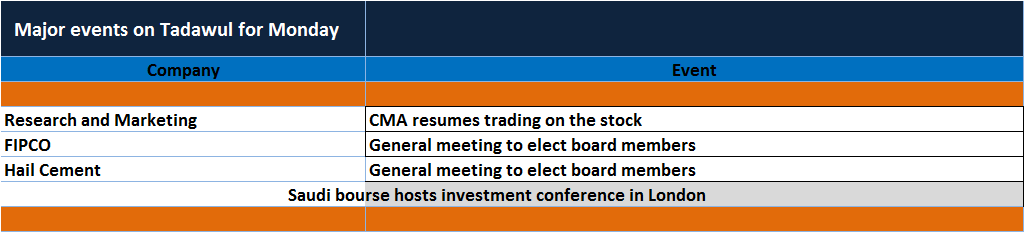 Riyadh-Mubasher: Investors are anticipating the following major events on Saudi Stock Exchange on Monday: